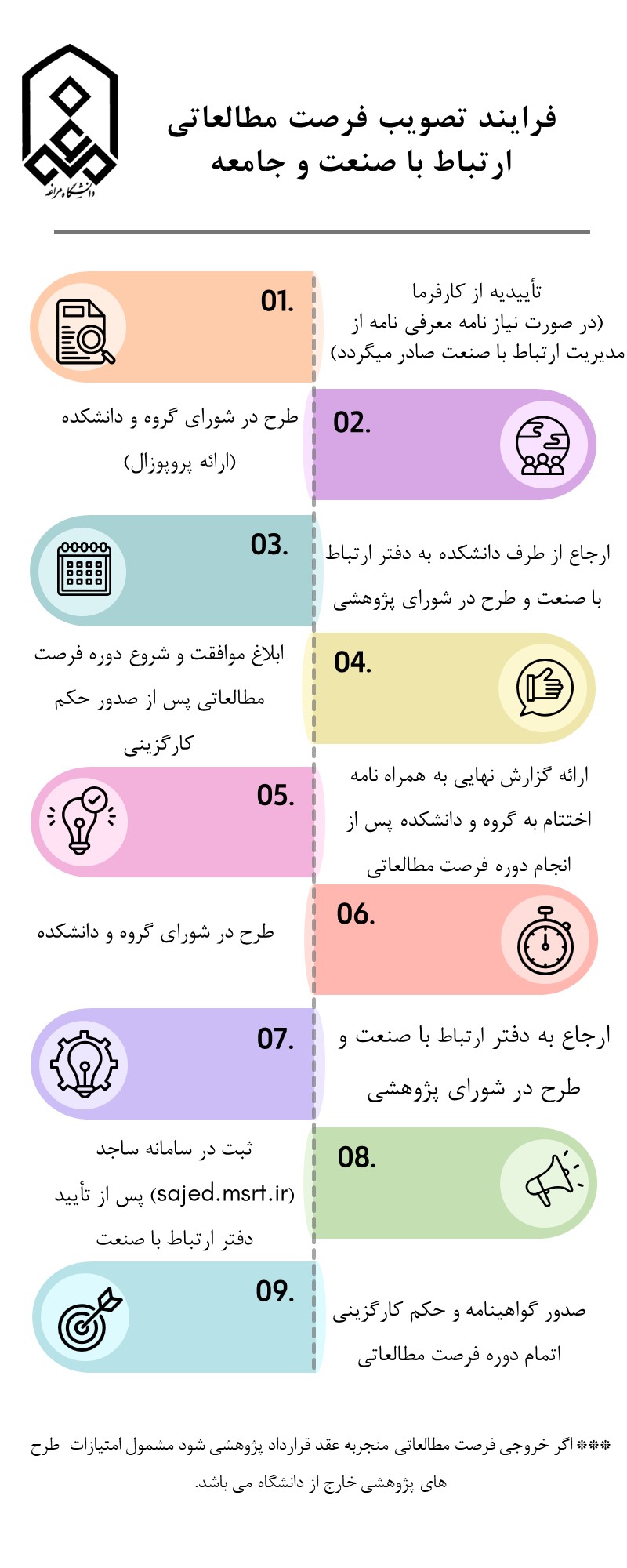 در زیر، فهرست فرمها و آییننامههای پژوهشی آورده شدهاست: هفته پژوهش و فناوری 1 - شیوهنامه انتخاب دانشجویان پژوهشگر برتر دانشگاه مراغه (ویرایش مهر 1403) 2 - پرسشنامه انتخاب دانشجویان پژوهشگر برتر دانشگاه مراغه 3 - پرسشنامه انتخاب دانش آموزان پژوهشگر برتر سال 1404 4 - شیوهنامه و فرم انتخاب پژوهشگران برتر ادارات شهرستان مراغه (ویرایش پاییز سال 1402) فرصت مطالعاتی ارتباط با صنعت و جامعه 1 - پروپوزال فرصت مطالعاتی ارتباط با صنعت و جامعه 2 - گزارش نهایی فرصت مطالعاتی ارتباط با صنعت و جامعه 3 - فرآیند تصویب فرصت مطالعاتی ارتباط با صنعت و جامعه ویژه پذیرش بدون آزمون استعدادهای درخشان 1 - دفترچه طرح استاد محوری در نظام ایده ها و نیازها (نان) اسناد 1 - سند اسلامی شدن دانشگاهها (مصوب 1392/04/25) قطب علمی 1 - آئین نامه تشکیل قطب علمی- عتف _آ-3103 (1397/07/07) دستور العمل های حمایت از مراکز هم آفرینی فضاهای کار اشتراکی نوآوری و شتابدهنده های نوآوری 1 - دستورالعمل حمایت از ایجاد، توسعه فعالیت و اعتباربخشی به مراکز همآفرینی (1402/05/28) 2 - دستورالعمل حمایت از توسعه فعالیت و اعتباربخشی به فضای کار اشتراکی نوآوری (1402/05/28) 3 - دستورالعمل شتابدهنده ها (1402/05/28) برگزاری رویداد علمی (همایش، کنفرانس، کارگاه تخصصی و ...) 1 - شیوه نامه نمایه سازی همایش های ملی و بین المللی توسط مؤسسه ISC (دی 1402) 2 - فرم درخواست برگزاری رویداد های (همایش های) علمی 3 - آیین نامه همایش های علمی (مصوب دیماه ۱۳۹۷) 4 - ساختار سازمانی همایش (ویرایش آبان 1404) مجموعه آیین نامه ها، شیوه نامه ها و دستورالعمل های وزارت عتف 1 - آئین نامه دستیار فناوری (1400/12/21) 2 - کتاب مجموعه آیین نامه ها، شیوه نامه ها و دستورالعمل های مصوب معاونت پژوهشی وزارت علوم، تحقیقات و فناوری (تابستان 1402) 3 - آیین نامه ارتقای مرتبه اعضای هیأت علمی آموزشی و پژوهشی و فناوری (ویرایش 1395) 4 - دستورالعمل نحوه اعطای پایه تشویقی به اعضای هیات علمی مصوب هیات امنا (1402/01/01) 5 - آیین نامه جامع مدیریت دانشگاهها و موسسات آموزش عالی (1389/12/10) 6 - آیین نامه مسئولیت اجتماعی شرکتهای تحت مدیریت دولت مصوب 1404/05/11 هیئت وزیران 7 - سند نقشه جامع علمی کشور تشویق فعالیت های پژوهشی و فناورانه 1 - فرم تشویقی فعالیت های پژوهشی و فناورانه 2 - شیوه نامه تشویق فعالیت های پژوهشی و فناورانه (1400/07/27) فرم ترفیع پایه 1 - فرم ترفیع پایه اعضای هیات علمی آموزشی 2 - فرم ترفیع پایه مرکز تحقیقات نجوم ارزیابی فعالیت های موظفی اعضای هیئت علمی پژوهشی دانشگاه 1 - شیوه نامه ارزیابی فعالیت های موظفی اعضای هیئت علمی پژوهشی دانشگاه (ویرایش زمستان 1398) کرسی های نظریه پردازی، نوآوری، نقد و مناظره و ترویجی 1 - فرم (الف) فرمت طرحنامه ترویجی 2 - فرم (ب) ارزیابی کرسی ترویجی 3 - فرم (ج) گزارش کمیته دستگاهی 4 - فرم خام اکسل کرسی ترویجی 5 - فلوچارت برگزاری کرسی ترویجی 6 - فرم (د) ارزیابی طرحنامه کرسی ترویجی 7 - آئین نامه هیات حمایت (دی ماه 1395) 8 - آشنایی با: کمیته دستگاهی برگزاری کرسیهای نظریه پردازی، نقد و مناظره 9 - شیوهنامه اجرایی کرسیهای ترویجی (10 آبان 1395) حمایت از فعالیت های پژوهشی دانشجویان 1 - شیوه نامه اجرائی حمایت از فعالیت های پژوهشی دانشجویان (ویرایش تیر 1403) 2 - شیوه نامه اجرایی بهره مندی از مشوق های مهارت آموزی در پیش و حین خدمت (اسفند 1402) فرصت مطالعاتی، کنفرانس و کارگاه های خارجی 1 - آئین نامه فرصت مطالعاتی دانشگاه مراغه (ویرایش بهار 1403) 2 - جدول مقرری ارزی خارج از کشور مربوط به فرصت تحقیقاتی خارج 3 - شیوه نامه فرصت مطالعاتی وزارت علوم (1390/06/02) 4 - برنامه تحقیق فرصت مطالعاتی 5 - فرم ارسال گزارش فرصت مطالعاتی اعضای هیات علمی توسط گروه 6 - فرم ارسال گزارش فرصت مطالعاتی اعضای هیات علمی 7 - مدارک لازم جهت استفاده از فرصت مطالعاتی 8 - کاربرگ عضو هیات علمی 9 - کاربرگ درخواست عضو هیات علمی گروه برای استفاده از فرصت مطالعاتی 10 - کاربرگ درخواست دانشکده برای استفاده از فرصت مطالعاتی 11 - فرم نهایی مربوط به هزینه ها 12 - فرم ک