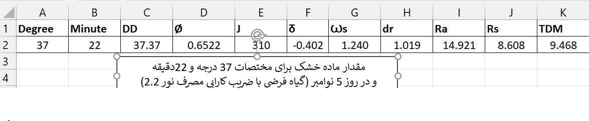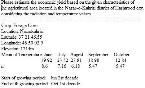 حل مثال برای تجمع ماده خشک بر اساس کارایی مصرف نور
